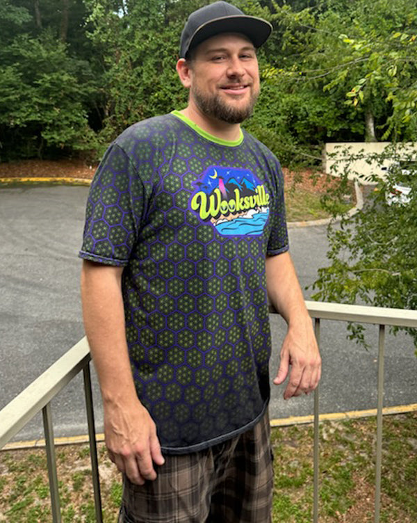 Our HexaFlower line is designed by Christopher Dowding and features artwork representing the Flower Of Life. This sacred geometry can be found on buildings, caves, and monuments dating back 6000+ years. It contains one of the universe's most consistent patterns, similar to the blueprint of life. This simple, yet powerful, design can complement any fit. Style it as a streetwear piece and turn heads both on and off the festival grounds.